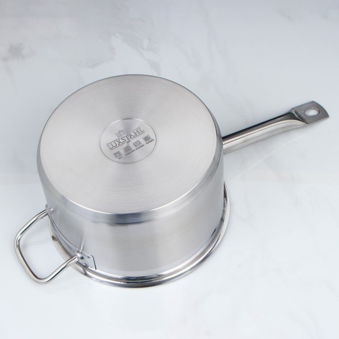 Сотейник Luxstahl изготовлен из высококачественной нержавеющей стали 18/10 и имеет трехслойное капсульное дно толщиной 4,2 мм, которое обеспечивает быстрый и равномерный подогрев пищи и исключает ее пригорание. Посуда из нержавеющей стали экологична, гигиенична и проста в эксплуатации. Она устойчива к воздействию кислот и щелочей, в том числе при высоких температурах, устойчива к деформации. В ней можно хранить приготовленное блюдо в холодильнике.