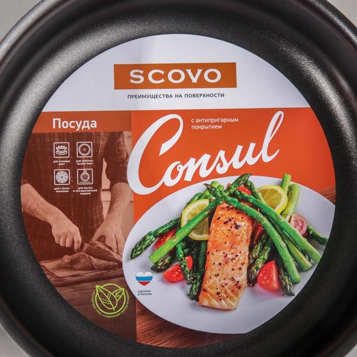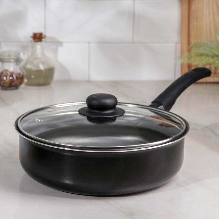 Сотейник Consul, 2,8 л, d=24 см, стеклянная крышка, пластиковая ручка, антипригарное покрытие, цвет чёрный