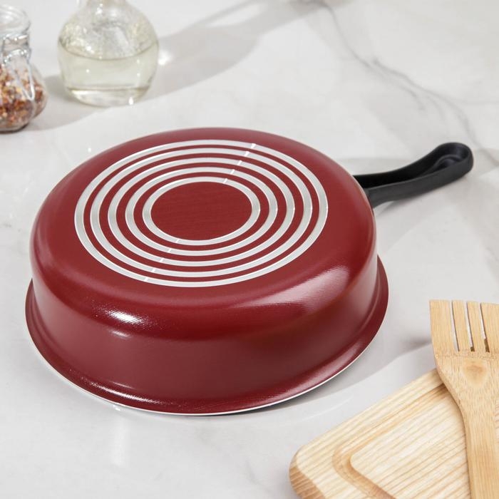 Сковорода Happy Heart, d=26 см, пластиковая ручка, антипригарное покрытие, цвет бордовый