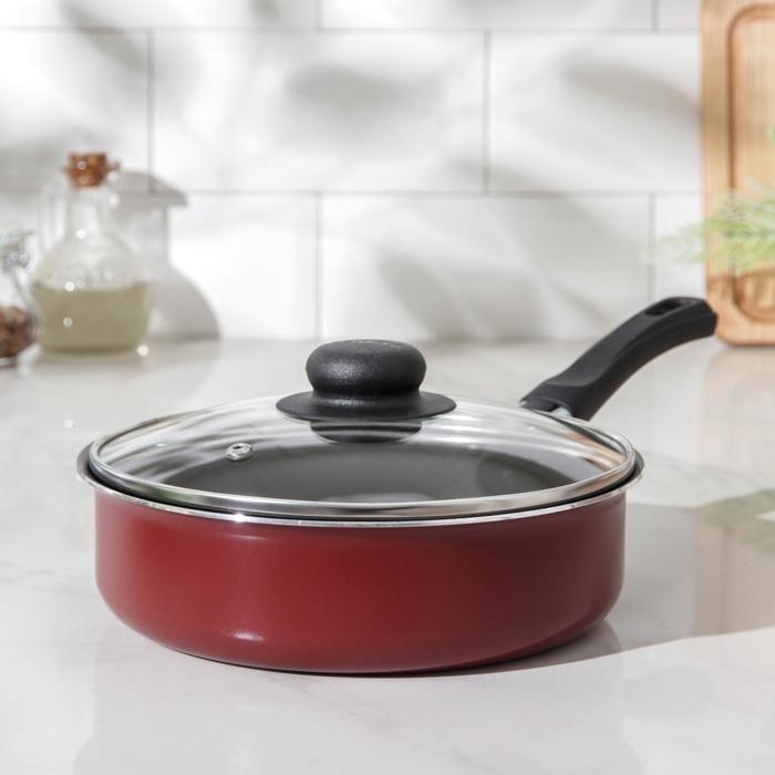 Сотейник «Эксперт», 1,7 л, d=20 см, пластиковая ручка, стеклянная крышка, антипригарное покрытие, цвет бордовый
