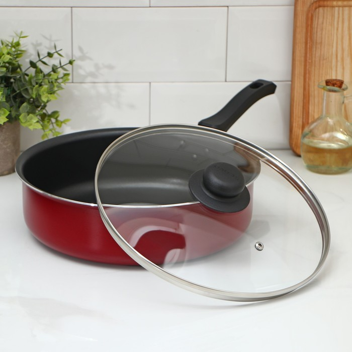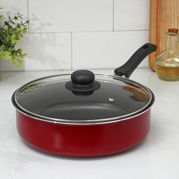 Сотейник «Эксперт», 3,5 л, d=26 см, пластиковая ручка, стеклянная крышка, антипригарное покрытие, цвет бордовый