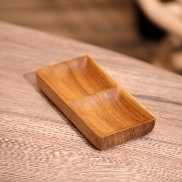 Соусница двойная, тиковое дерево 14х7х2 см