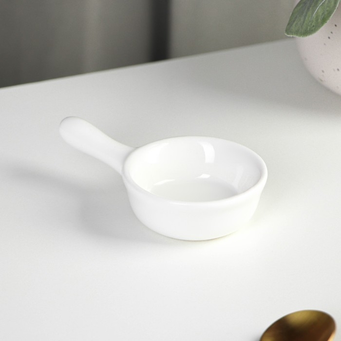 Соусник керамический с ручкой Доляна «Классика», 30 мл, 10×6 см, цвет белый