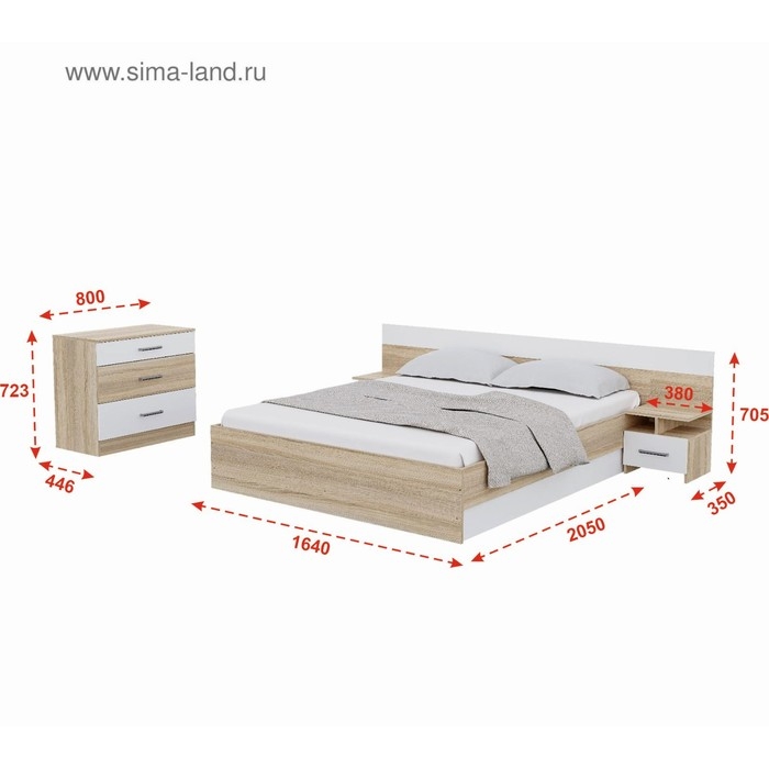 Спальня Леси, кровать 1600, тумбы 2 шт, комод, Дуб сонома/Белый