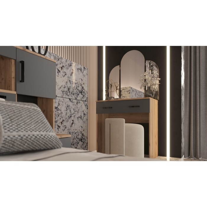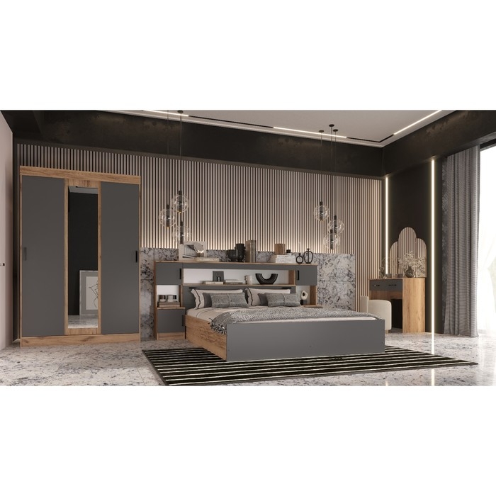 Спальный гарнитур Мадера, Шкаф 4хств, Кровать 1,6х2, Комод 4 ящ, тумба прикроват 2 шт Графит