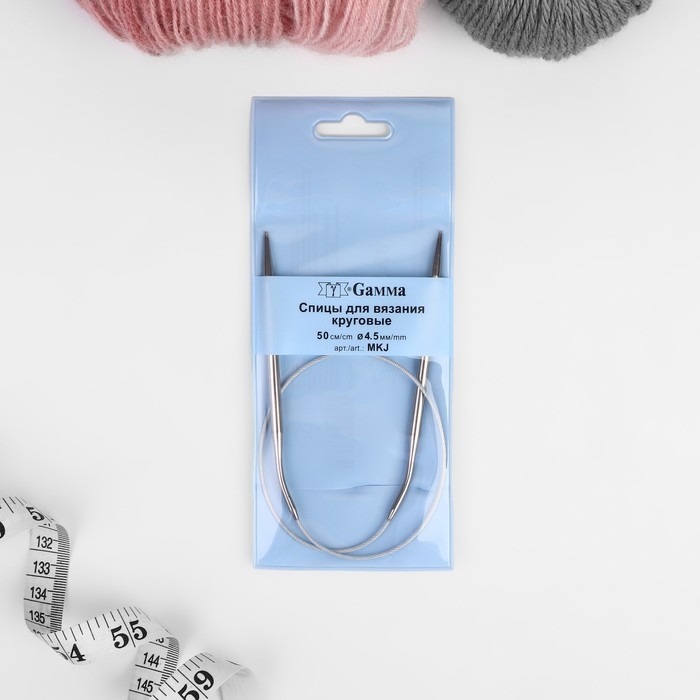 Спицы круговые, для вязания, с металлическим тросом, d = 4,5 мм, 50 см