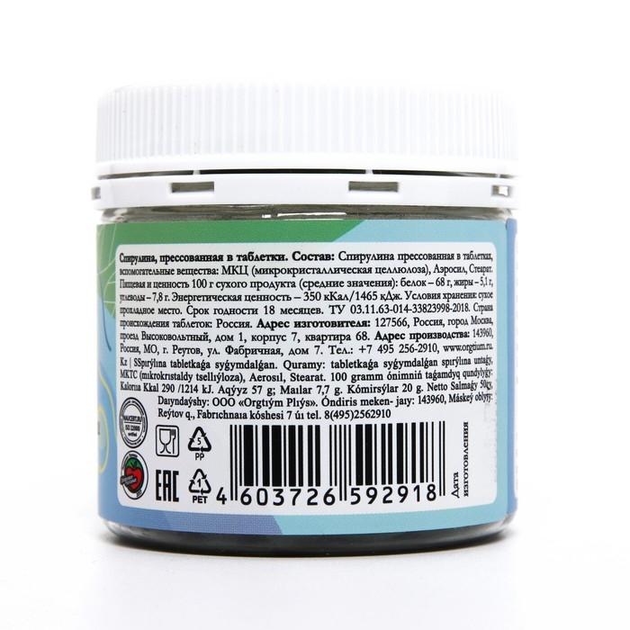 Спирулина, прессованная в таблетки, 50 г