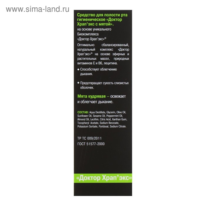 Оптимально сбалансированный спрей с мятой, натуральный комплекс «Доктор Храп’экс» на основе эфирных и растительных масел, природных витаминов Е и В6, лецитина способствует: