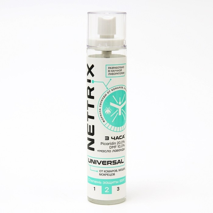 Nettrix Universal от комаров, мошек, мокрецов - защита взрослых людей от комаров и других кровососущих насекомых. Можно наносить на тело и одежду.