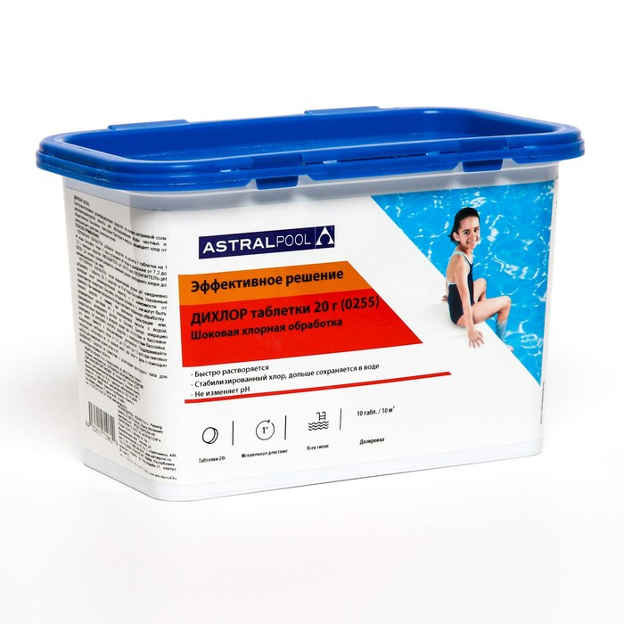 Средство "Дихлор" AstralPool для обработки и ударной дезинфекции воды в бассейне, таблетки, 1 кг