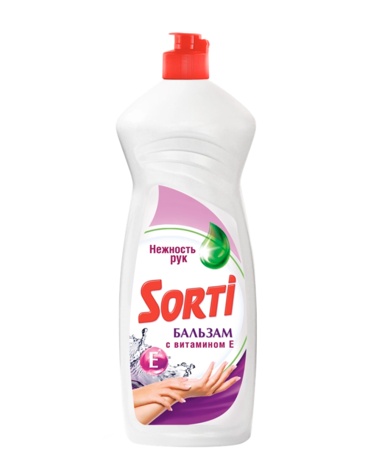 SORTI. Активные компоненты средства для мытья посуды SORTI отлично справляются с жиром даже в холодной воде. Полезная добавка, входящая в состав, бережно заботится о коже Ваших рук. Оставляет на посуде только зеркальный блеск и никаких разводов.