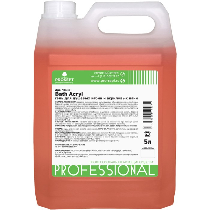 Средство для чистки акриловых поверхностей и душевых кабин Bath Acryl . Концентрат, 5л