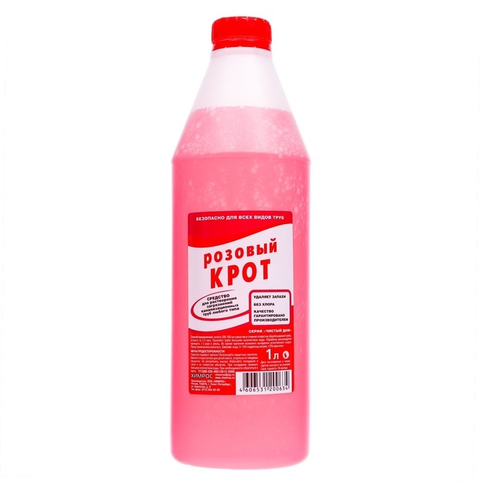 «Розовый Крот» подходит для всех видов канализационных труб, включая пластиковые. Кроме того, средство обладает дезинфицирующими свойствами и удаляет неприятные запахи.