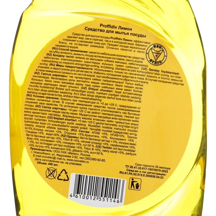 Средство для мытья посуды "Proffidiv", лимон — это эффективный и экономичный способ сделать вашу посуду чистой и блестящей.