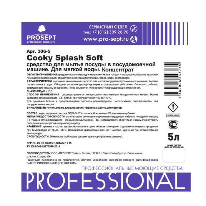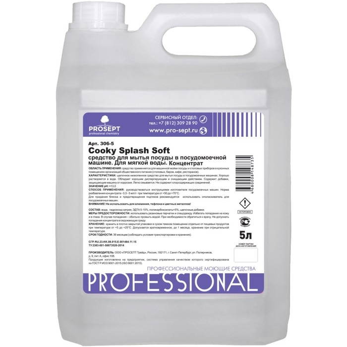 Средство для мытья посуды в ПММ "Cooky Splash Soft", для мягкой воды, концентрат, 5 л