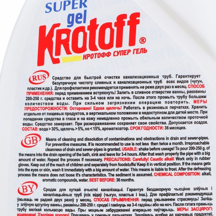 Средство от торговой марки Super быстро устранит сильные засоры в канализационных стоках, эффективно растворит волосы, грязь, остатки жира, пищи и другие загрязнения. Нейтрализует неприятные запахи.