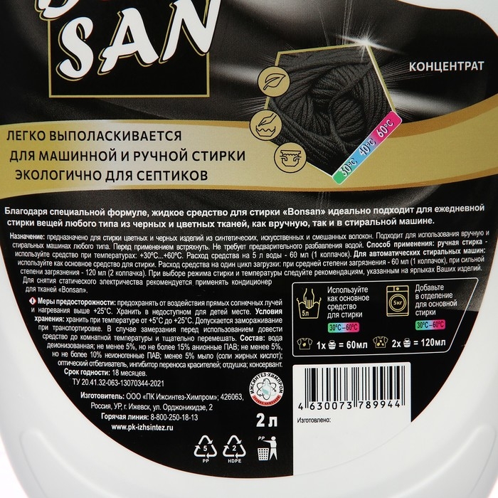 Средство для стирки цветных и черных тканей Bonsan, 2 л ПЭ