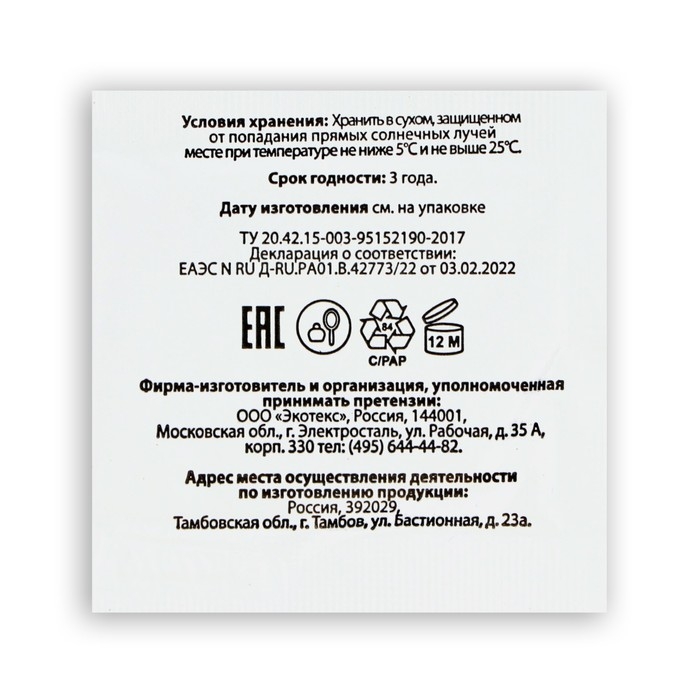 Средство от пота и запаха ног Экотекс, 10 пакетиков по 1,5 г, 10 наборов