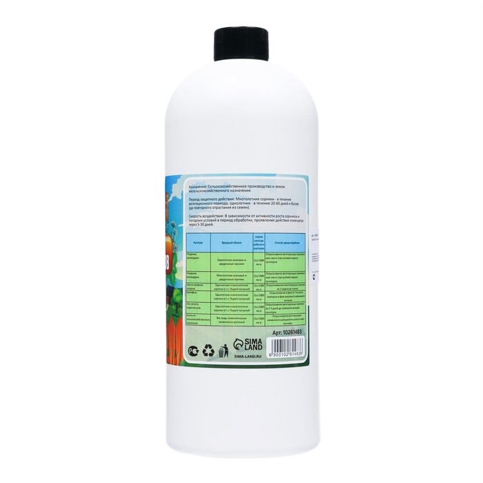 Эффективное средство сплошного уничтожения сорняков, представленное в форме жидкости объемом 1 литр. Этот препарат разработан специально для борьбы с нежелательными растениями на вашем участке.Он подходит для борьбы с различными видами сорняков, включая трудноликвидируемые, такие как одуванчики и полынь. Благодаря своей формуле, препарат быстро и эффективно уничтожает корни растений, что предотвращает их повторное появление.Легок в использовании. Для обработки участка достаточно разбавить препарат в соответствии с инструкцией и нанести его на поверхность посредством опрыскивателя или ручного распылителя. Препарат не оставляет следов на поверхности и не наносит вреда окружающей среде.При использовании необходимо соблюдать меры предосторожности. Препарат содержит активные компоненты, которые могут вызвать раздражение кожи и глаз. Поэтому, перед началом работы, рекомендуется надеть защитные перчатки и очки.