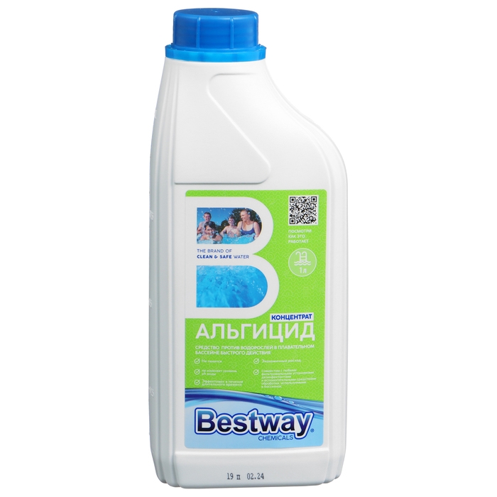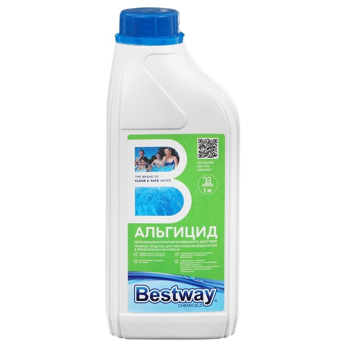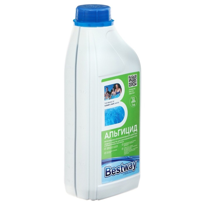 Альгицид Bestway непенящийся пролонгированного действия уничтожает водоросли в воде бассейна и предупреждает их образование.