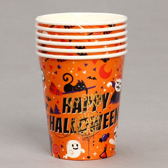 Стакан бумажный «Счастливого хэллоуина», в наборе 6 шт.