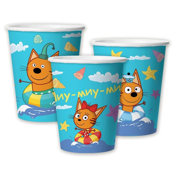 Стакан бумажный «Три кота: Морские приключения», в наборе 6 шт., 250 мл