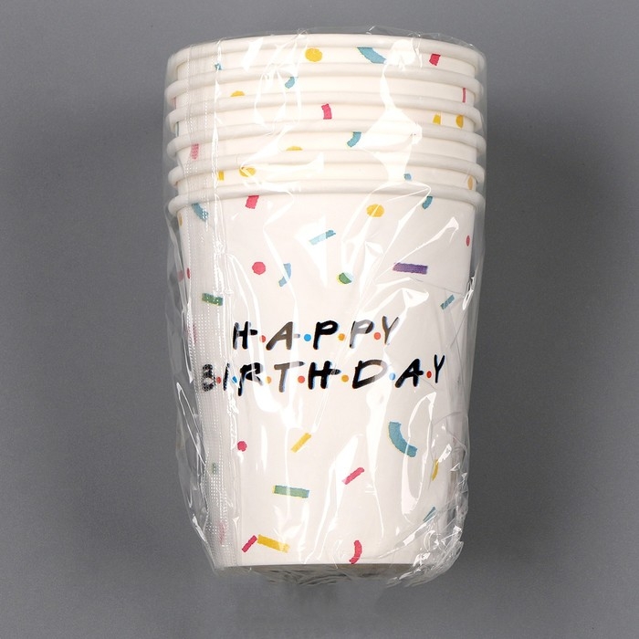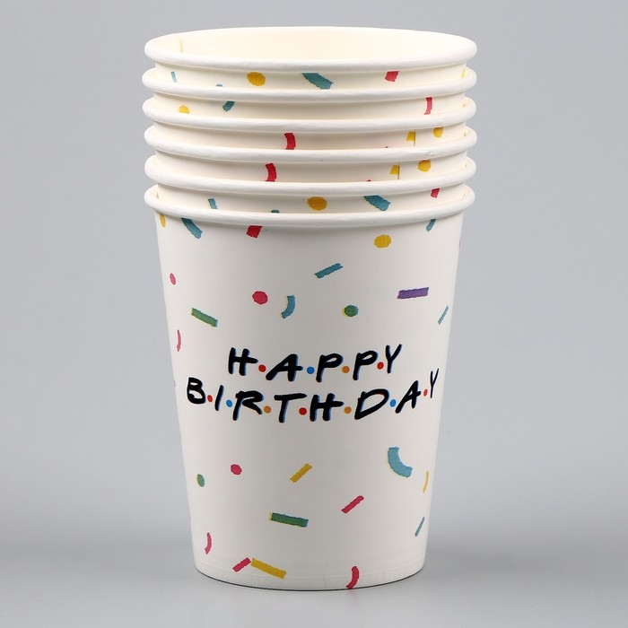 Стакан одноразовый бумажный «HAPPY BIRTHDAY», 250 мл, набор 6 шт.