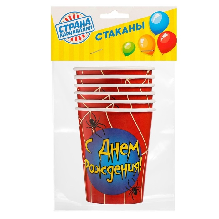 Стакан одноразовый бумажный "С Днем рождения" паутинка, 250 мл. (набор 6 шт)