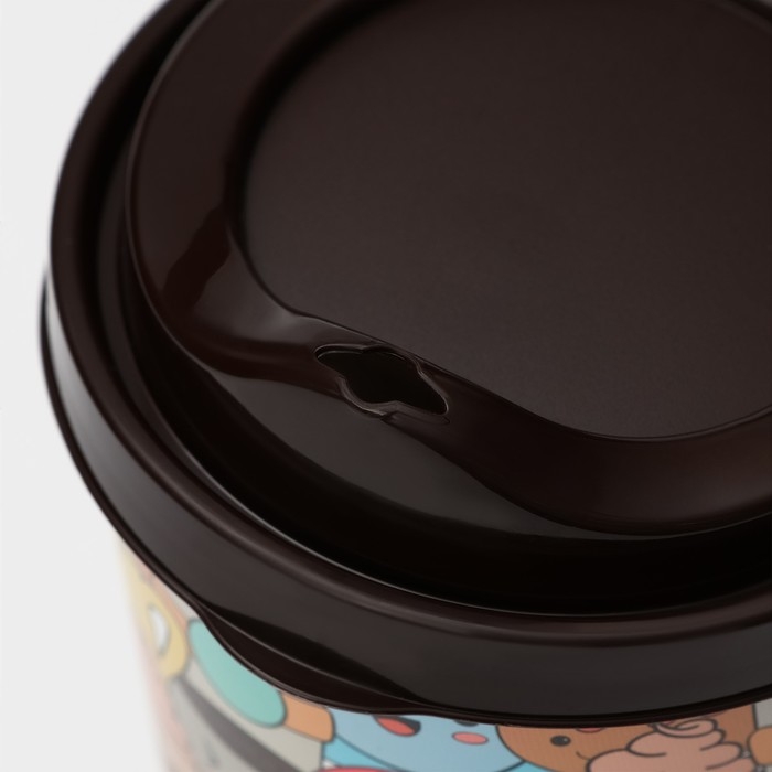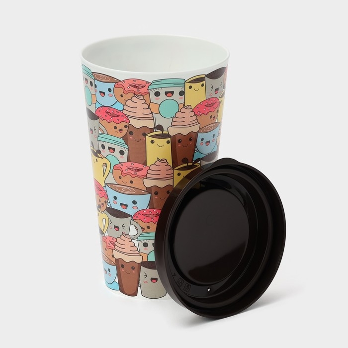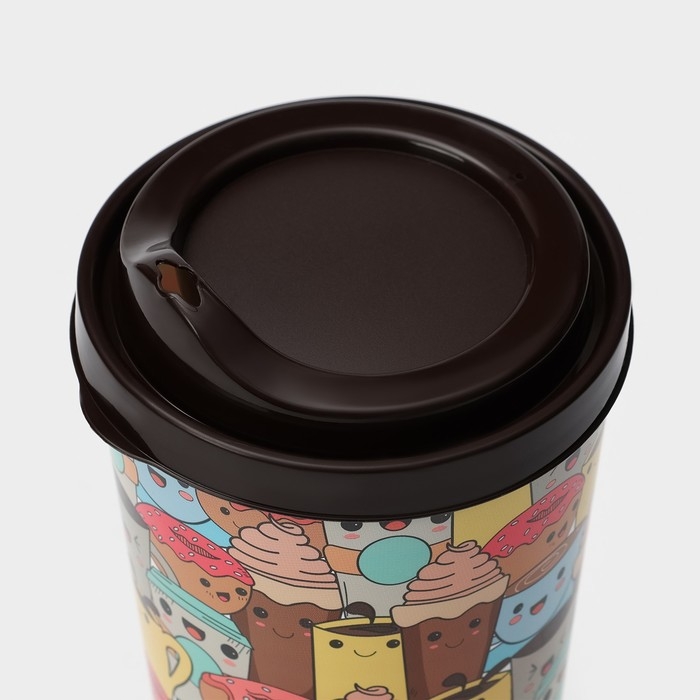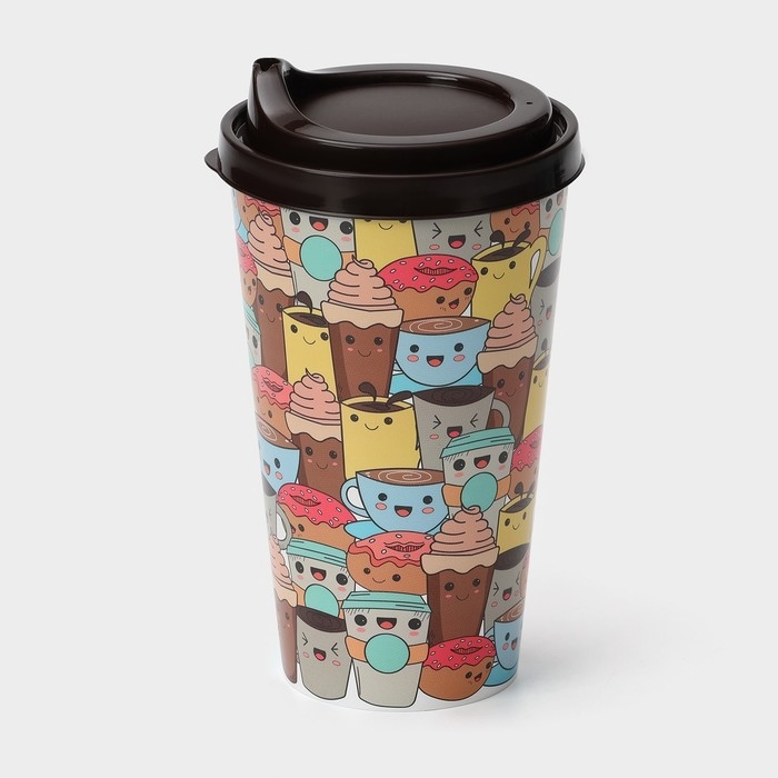 Стакан пластиковый с крышкой «IZI-GO», 550 мл, 9,3×9,1×15,8 см, декор МИКС, цвет тёмно-коричневый