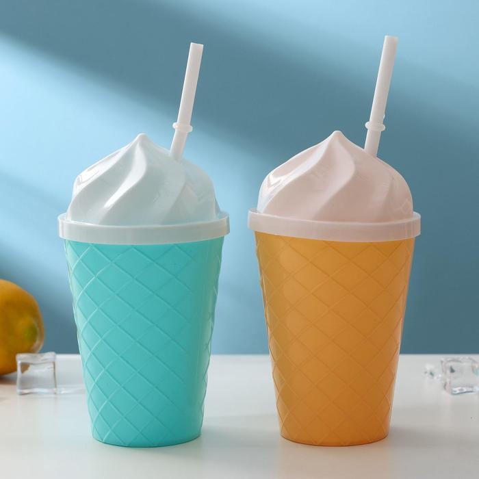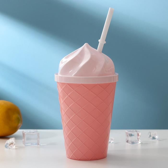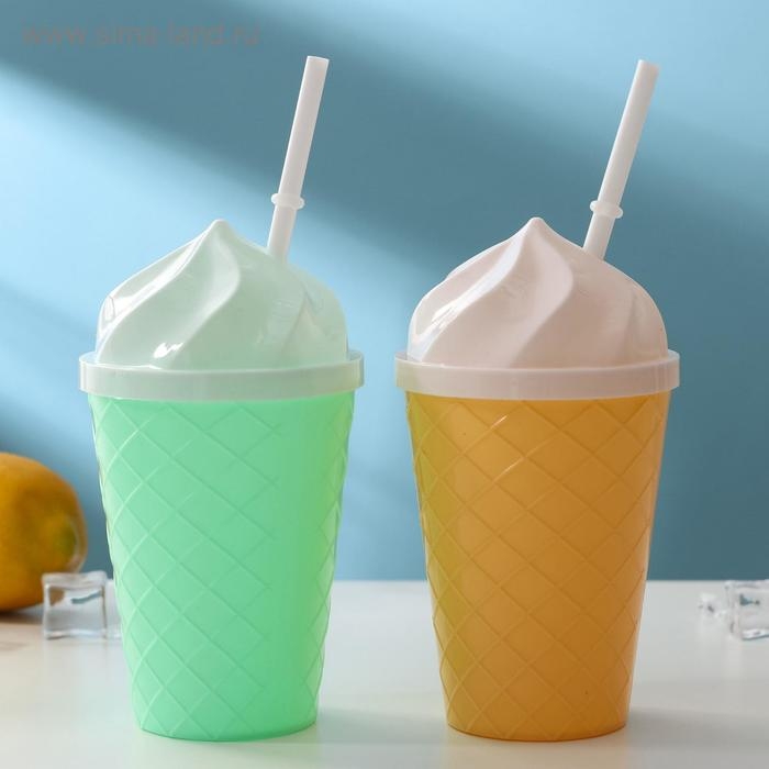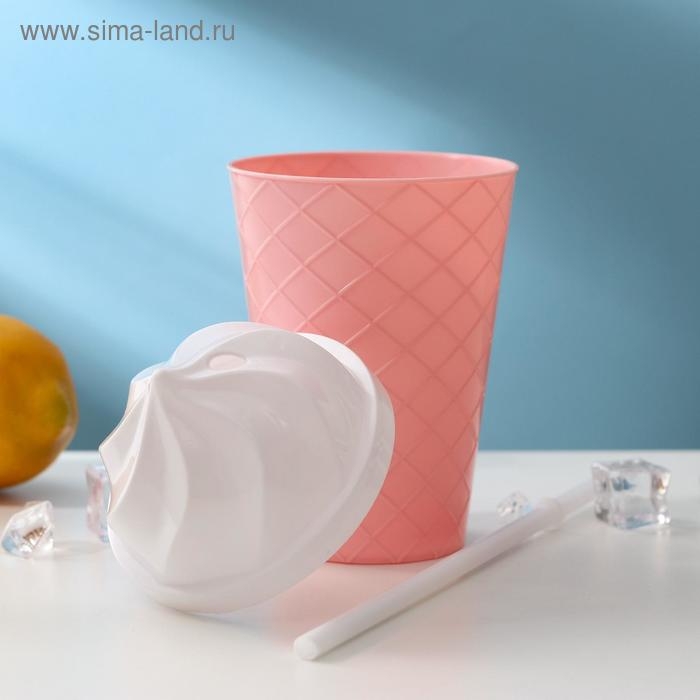Стакан «Пломбир», 500 мл, с крышкой и трубочкой, цвет МИКС