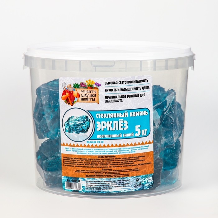 Стеклянный камень (эрклез) "Рецепты Дедушки Никиты", фр 20-70 мм, Драгоценный синий, 5 кг