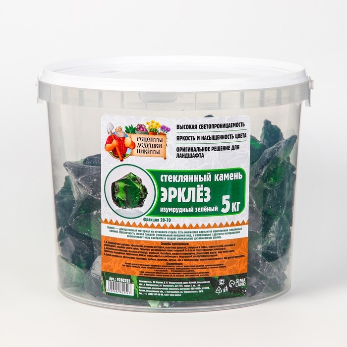 Стеклянный камень (эрклез) "Рецепты Дедушки Никиты", фр 20-70 мм, Изумрудный зелёный, 5 кг