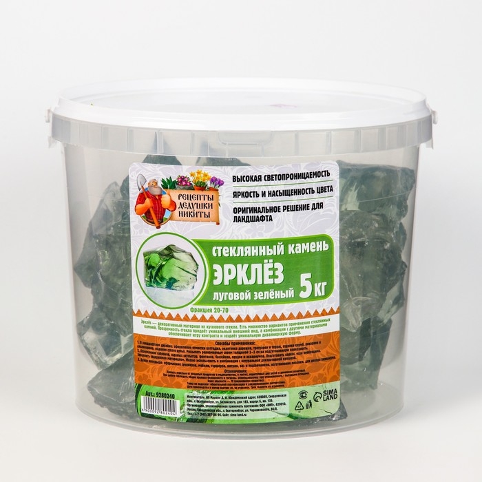 Стеклянный камень (эрклез) "Рецепты Дедушки Никиты", фр 20-70 мм, Луговой зелёный , 5 кг