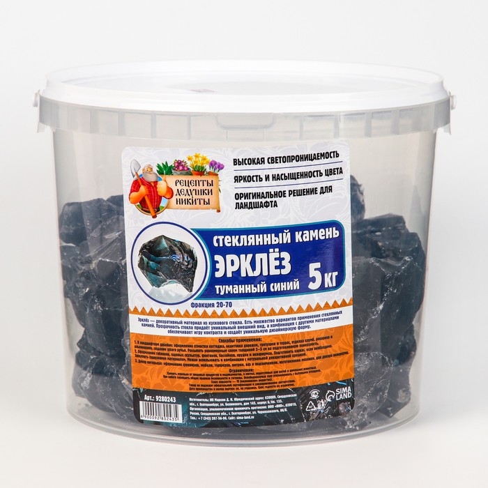 Стеклянный камень (эрклез) "Рецепты Дедушки Никиты", фр 20-70 мм, Драгоценный синий, 5 кг