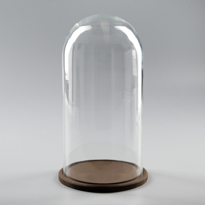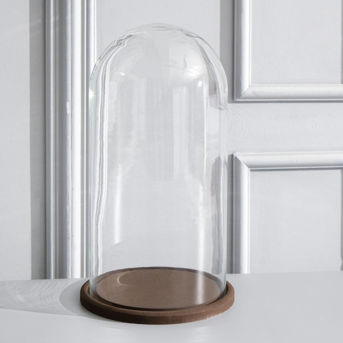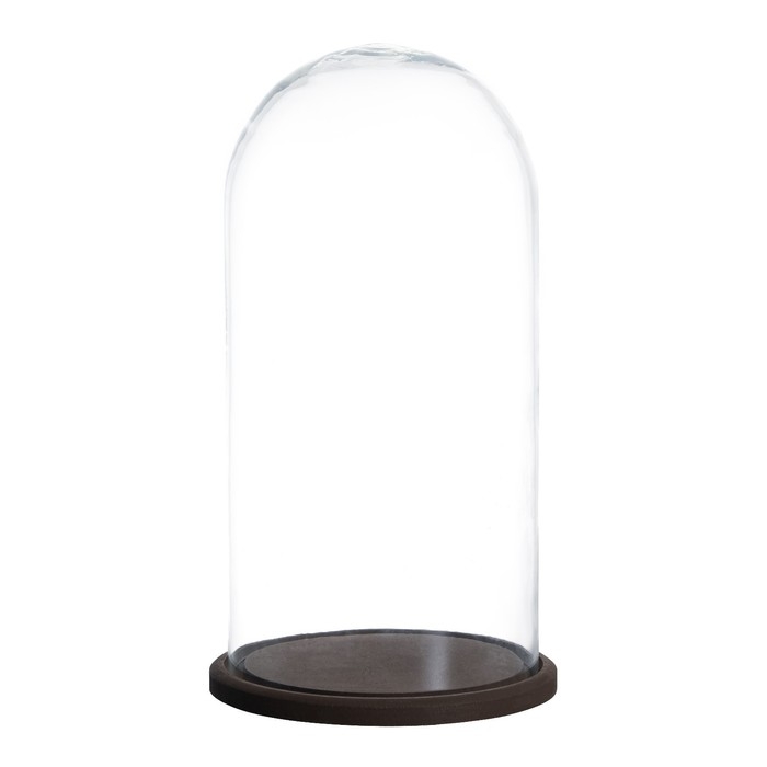 Стеклянный купол-клош на деревянной подставке "Венсан - 1", 30х15 см, коричневый