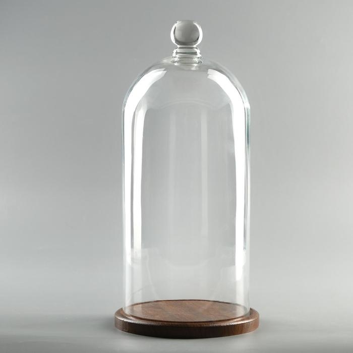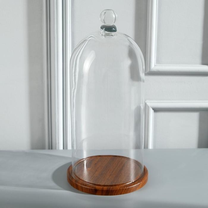 Стеклянный купол-клош на деревянной подставке "Венсан - 1", 20х15 см, коричневый