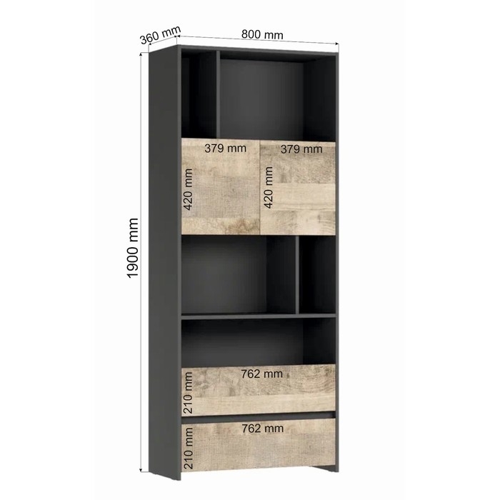 Стеллаж Денвер, 800х360х1900, Графит/Дуб гранж