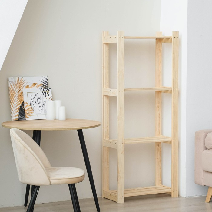 Открытый компактный стеллаж, сделанный из массива хвои, самый бюджетный в нашей серии. Он станет полезной частью гостиной, спальни, детской комнаты, квартиры-студии или офисных помещений.