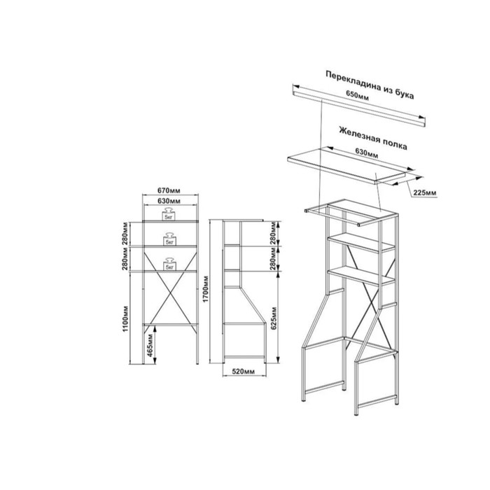 Стеллаж над стиральной машиной, черный 67 х 52 х 170 см