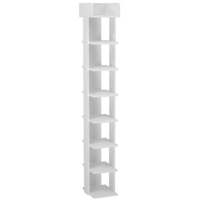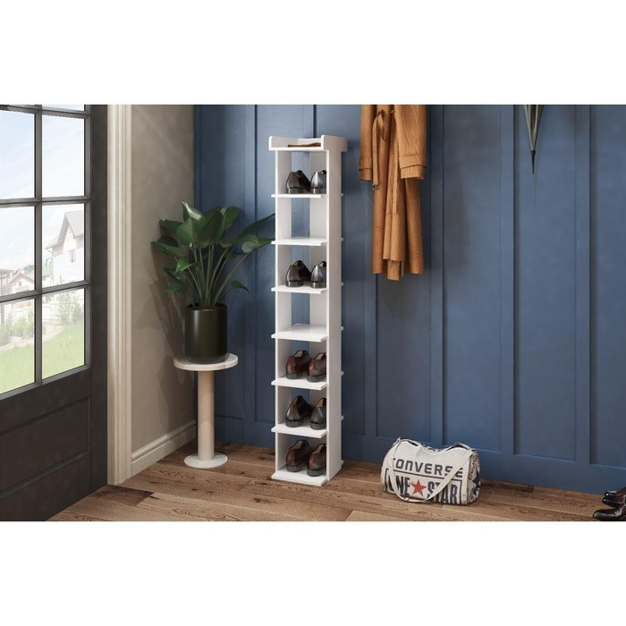 Напольный стеллаж с большим количеством полок подойдёт как для прихожей (выставить демисезонную обувь), так и в гостиную/спальню/детскую/кабинет: расставить элементы декора, личные вещи или же документы.