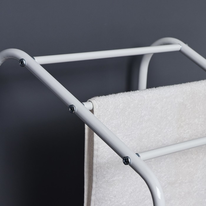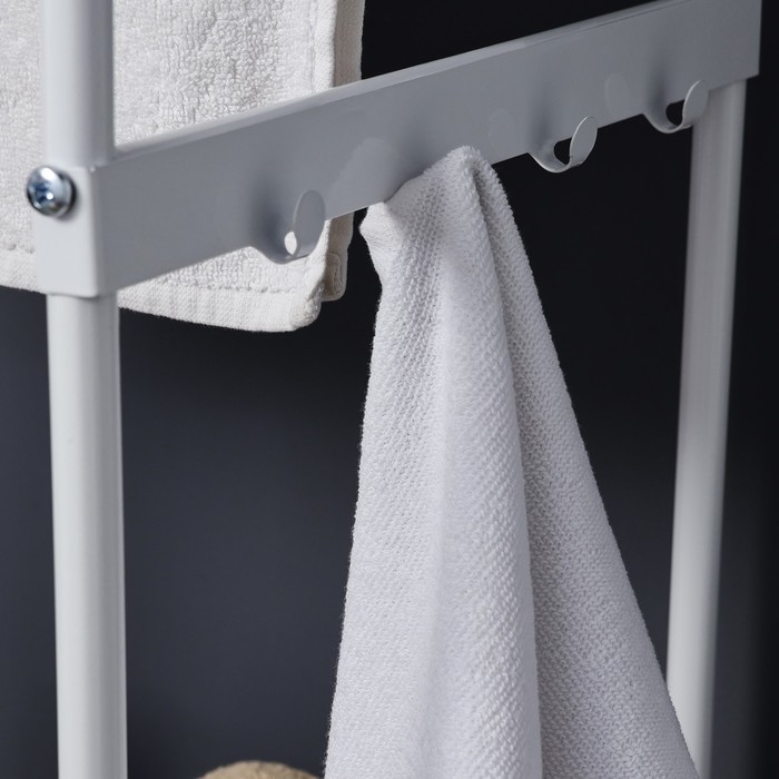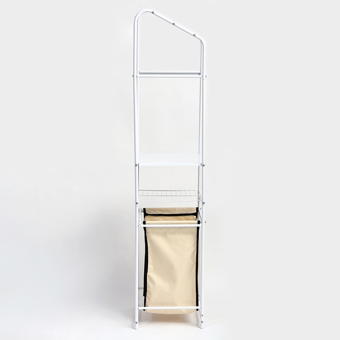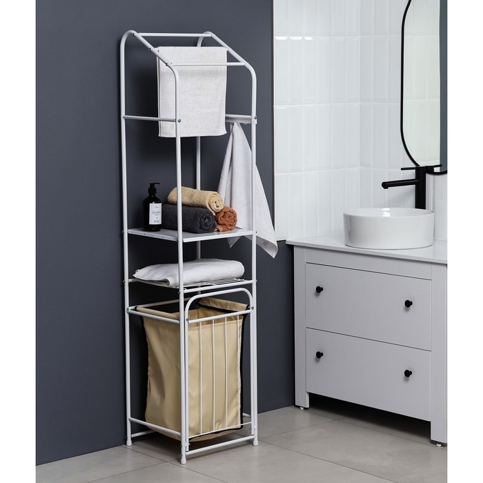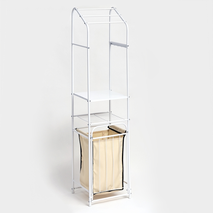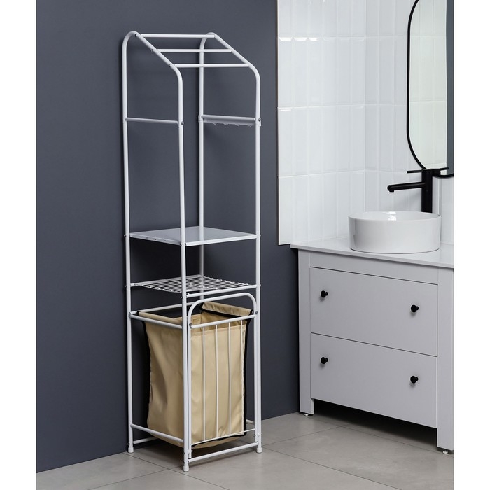 Стеллаж с корзиной для белья и перекладинами, 2-х ярусный, объем корзины 45 л, 38×35×160 см, цвет белый