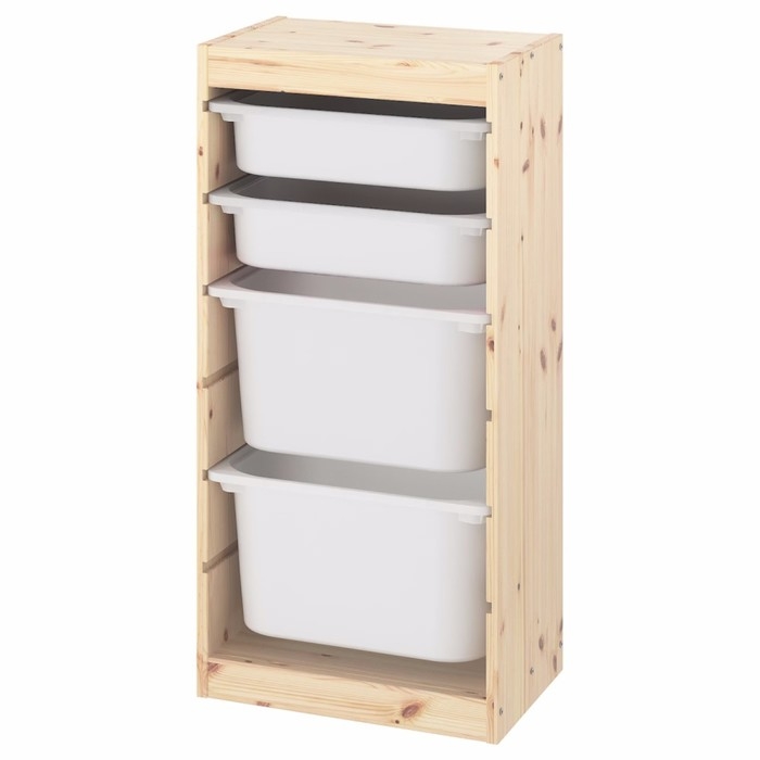 Детям нужно место для игр и место для хранения игрушек. Все это есть в серии предметов для хранения TROFAST: прочные деревянные рамы и легкие пластиковые ящики, которые ваш ребенок с легкостью достает, переносит и ставит обратно.