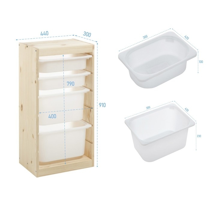 Стеллаж TROFAST-2, с контейнерами, вертикальный, Массив сосны