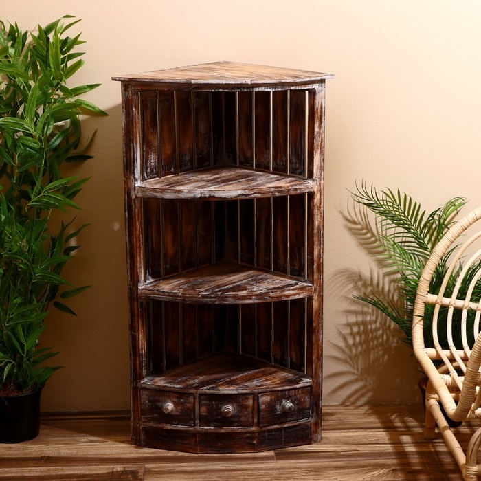 Стеллаж угловой "Бали стайл" 40х40х105 см, дерево албезия, светло-коричневый