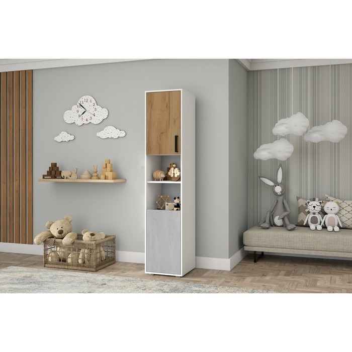 Стеллаж Юпитер, 435х445х2015, Белый/Дуб крафт/Бетон