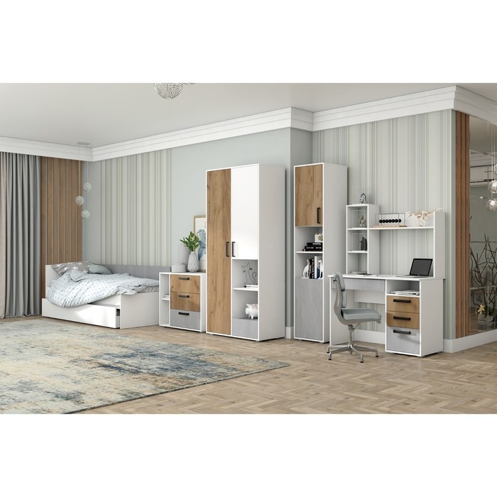 Стеллаж Юпитер, Белый/Дуб крафт/Бетон удобный, компактный и вместительный, подходящий для современного лаконичного интерьера. На 5 полках поместятся вещи и аксессуары.
