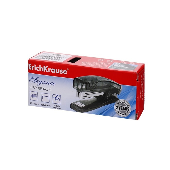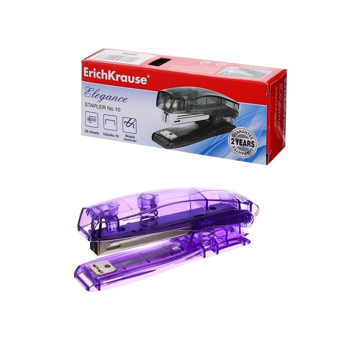 Степлер ErichKrause Elegance № 10, до 20 листов, встроенный антистеплер, МИКС