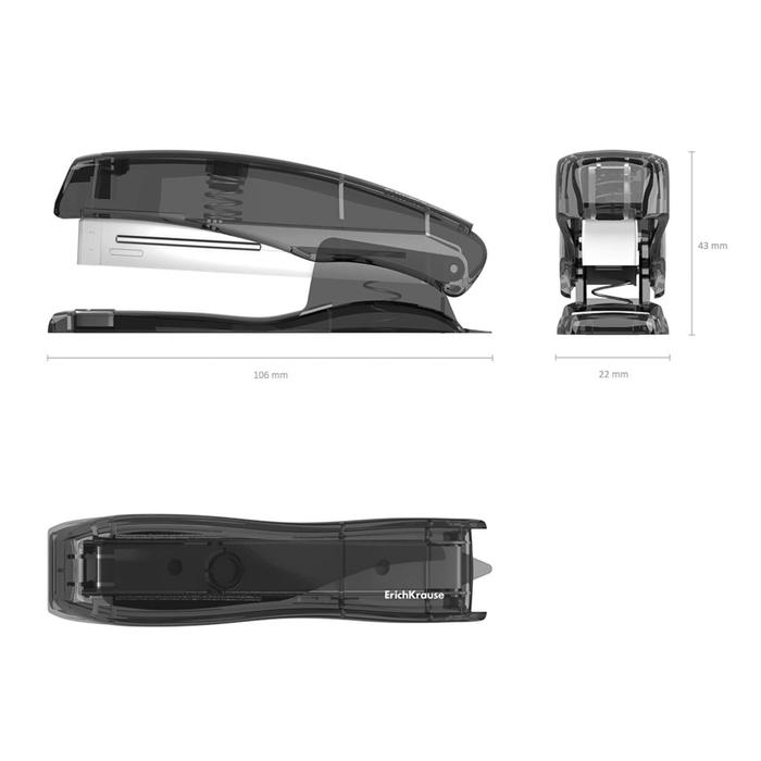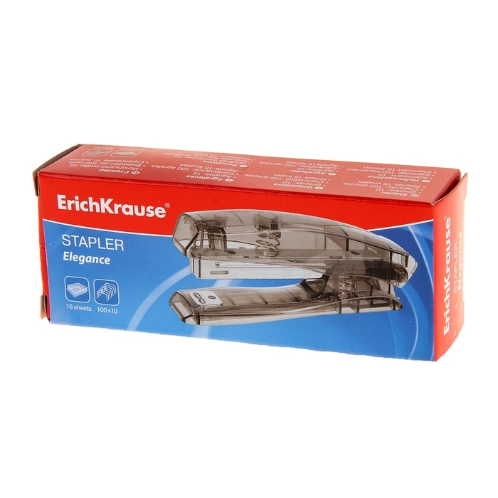 Степлер ErichKrause № 10, до 15 листов, встроенный антистеплер, вмещает до 50 скоб, глубина закладки бумаги до 51 мм, микс