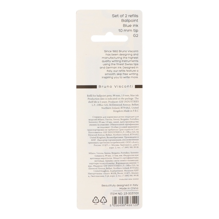 Стержень шариковый 99мм BV Milano,Verona,SiennaBergamo,Portofino,Sorrento, 1.0мм, син