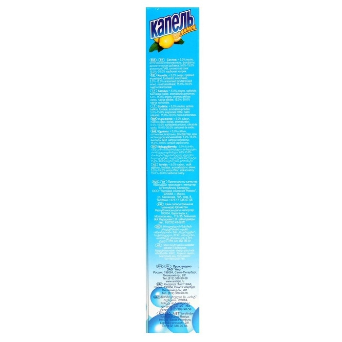 Состав: < 5% мыло, оптический отбеливатель, ароматический компонент; 5%-15% анионные ПАВ, силикат натрия, 15-30% карбонат натрия.